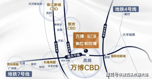 交通可达性是衡量城市居所价值的重要标尺。万博珠江城位于广州城市中轴与南大干线经济带的交汇点,其交通网络呈现出“轨道+快速路”的双重优势。从项目出发,步行约550米即可抵达地铁7号线员岗站。这条线路的含金量在于其高效的换乘能力:乘坐1站即可到达7号线号线的换乘枢纽——南村万博站,通过18号线站即抵珠江新城。对于在天河CBD或琶洲商务区工作的群体而言,这种“一站换乘、直达核心”的通勤模式,将单程通勤时间压缩在了可控范围内。在自驾出行方面,项目距离南大干线分钟即可驶入万博CBD核心区,约10分钟到达长隆旅游度假区,约20分钟抵达广州南站。借助南沙港快速、新光快速、华南快速等路网,居民可在约15分钟内到达琶洲,约20分钟通达珠江新城,约25分钟车程覆盖南沙自贸区。这种立体化的交通格局,使得万博珠江城不仅服务于万博本地就业人群,也具备了承接中心城区外溢居住需求的物理基础。